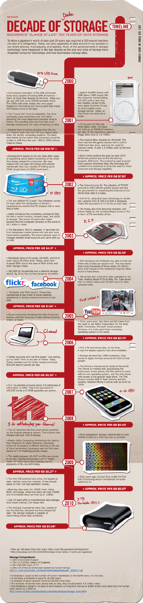Que deprisa avanza la informática, la infografía que tenemos a continuación nos revela cómo ha cambiado el almacenamiento desde 2000 hasta 2010.