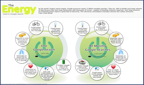 Una infografía sobre la energía utilizada en las búsquedas de Google.