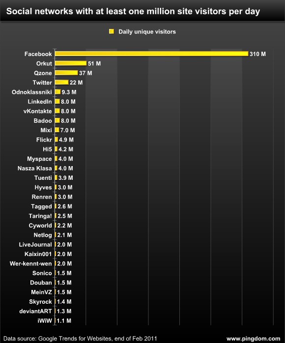 Una infografía sobre las 29 redes sociales más visitadas del mundo cada día.