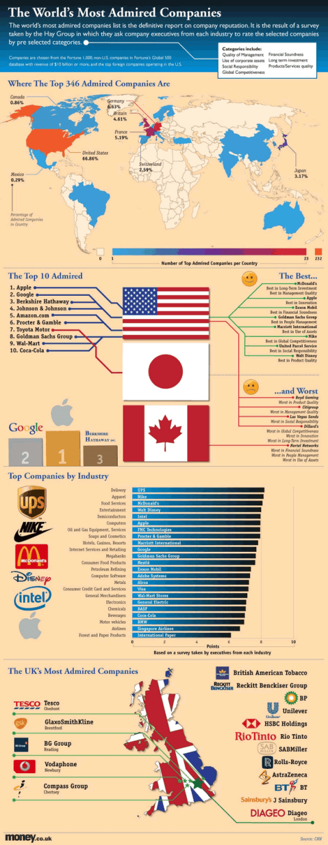 Una infografía sobre las empresas más admiradas del mundo.