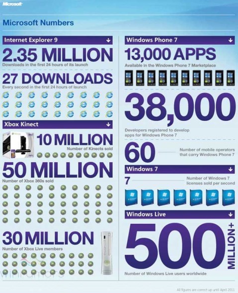 Una infografía sobre los impresionantes números de Microsoft (abril/2011).