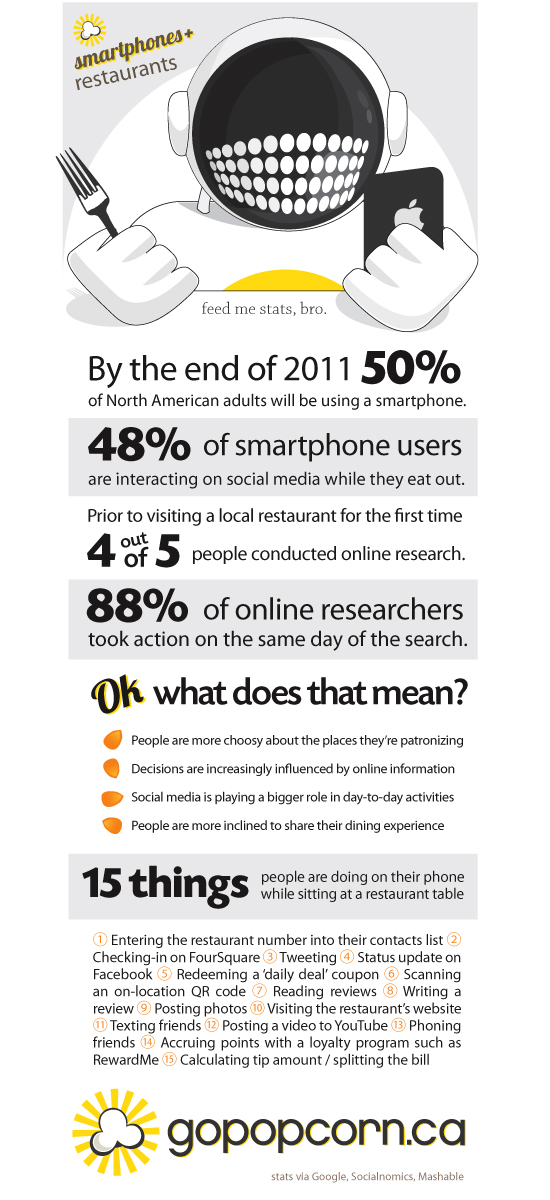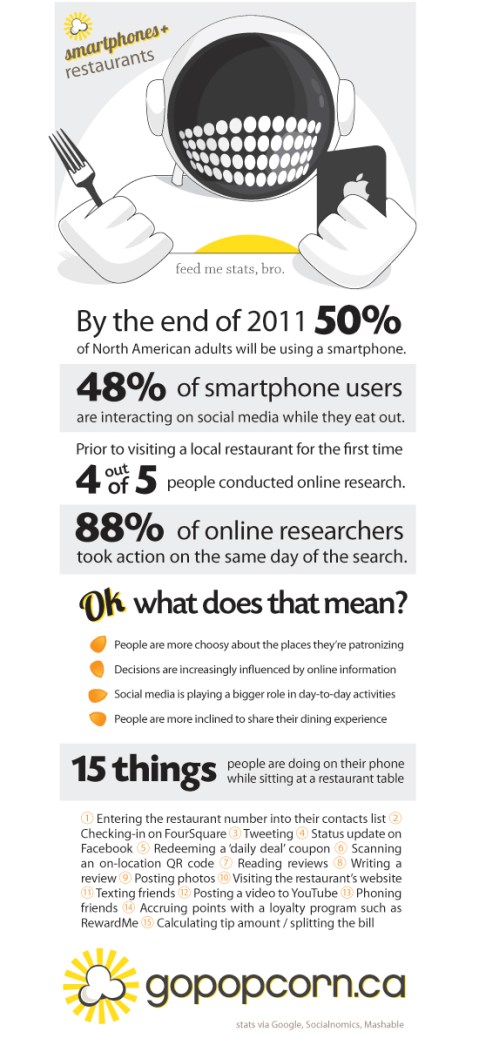 Una infografía sobre el uso de un smartphone en un restaurante.