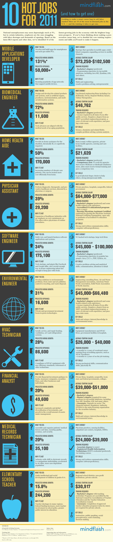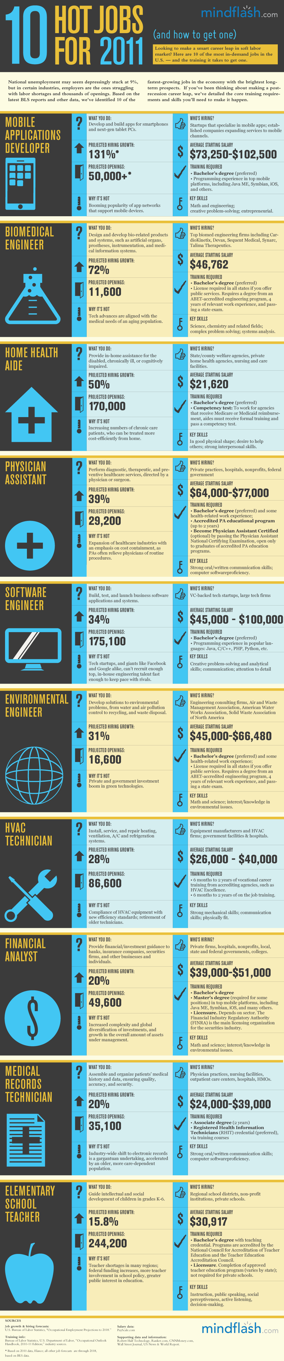 Una infografía sobre los 10 trabajos en auge para 2011 y cómo conseguirlos.