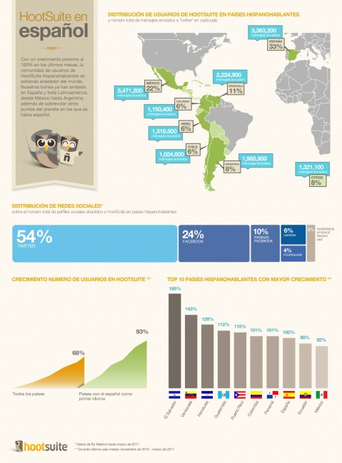Una infografía con información de Hootsuite en los países hisponohablantes.