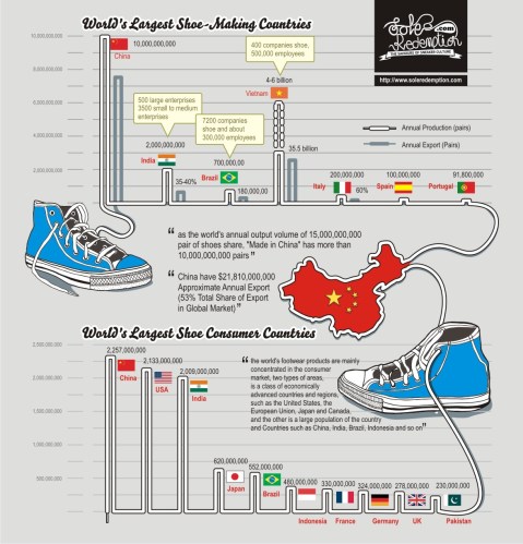Una infografía con países que fabrican/consumen más zapatos del mundo.