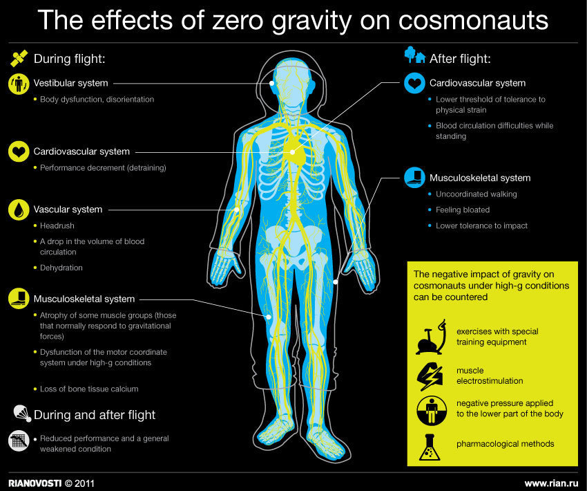 Una infografía sobre los efectos de la gravedad cero en los astronautas.