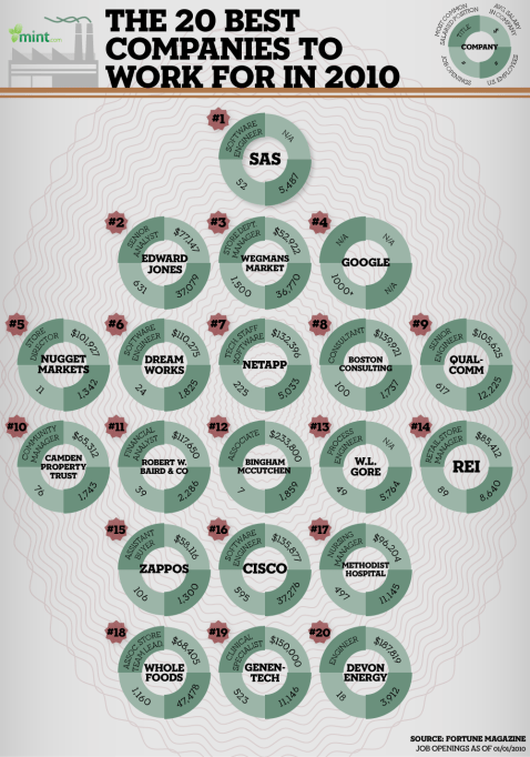Una infografía con las 20 mejores empresas para trabajar (2010).