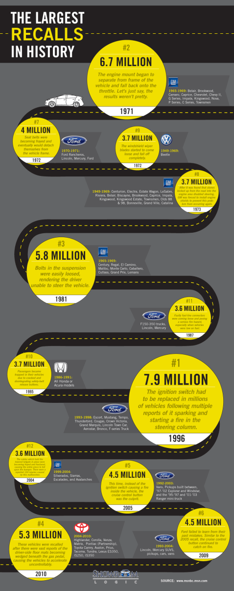 Una infografía sobre las llamadas de marcas de coches para reparar fallos.