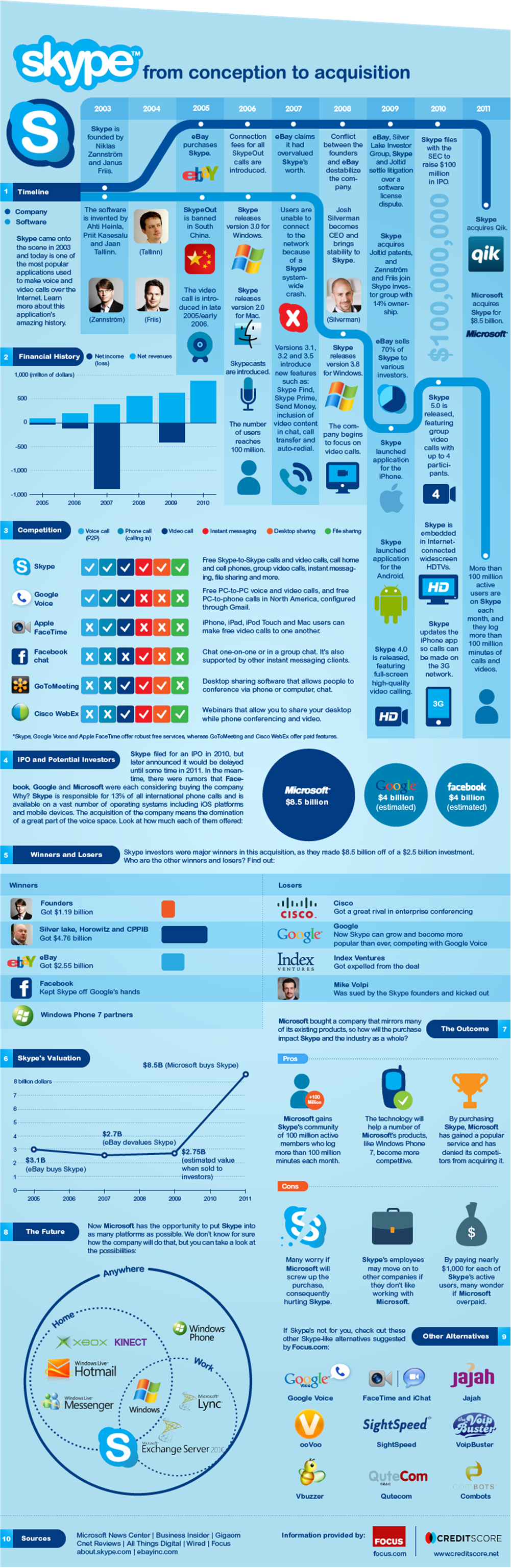 Una infografía sobre Skype, desde su creación a su venta a Microsoft. Vía Focus.
