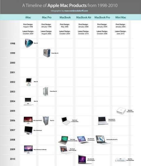 Una infografía con todos los productos Mac desde 1998 hasta 2010.