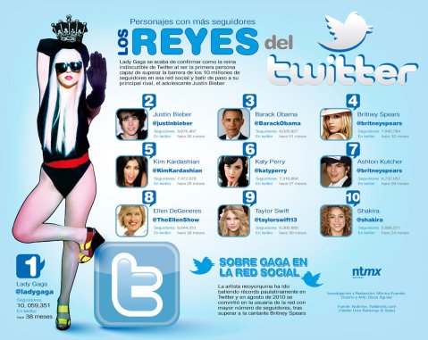 Una infografía sobre los reyes del Twitter. Vía VisualLoop