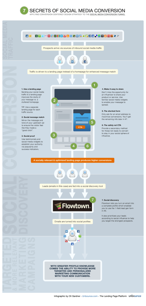 Una infografía con los 7 secretos de la conversión al Social Media. Vía Unbounce.com
