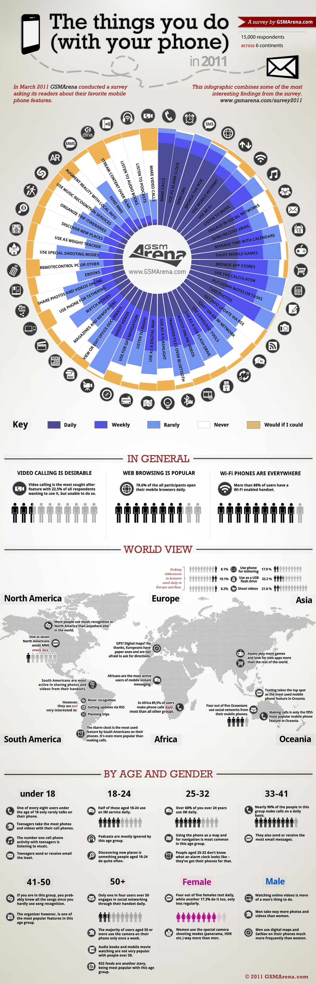 una infografía que nos responde a la pregunat ¿Qué haces con tu teléfono móvil?
