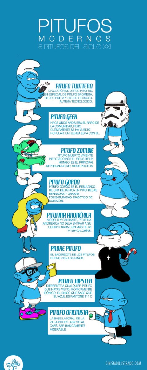 una infografía sobre los pitufos modernos, hasta tienen un pitufo twittero.