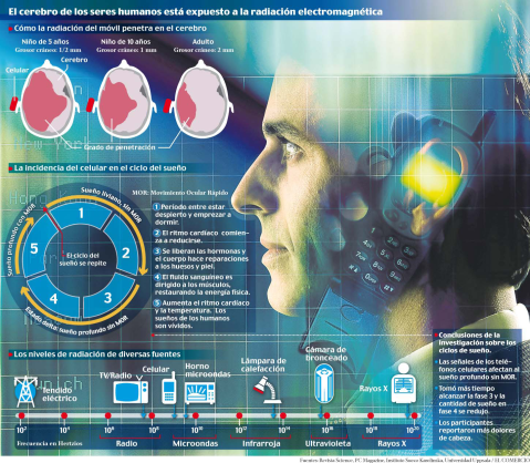 Una infografia sobre la exposición del cerebro humano a las radiaciones electromagnéticas.