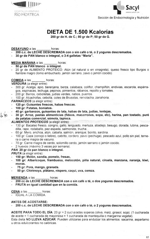 Una dieta médica de las 1.500 Kcalorias.