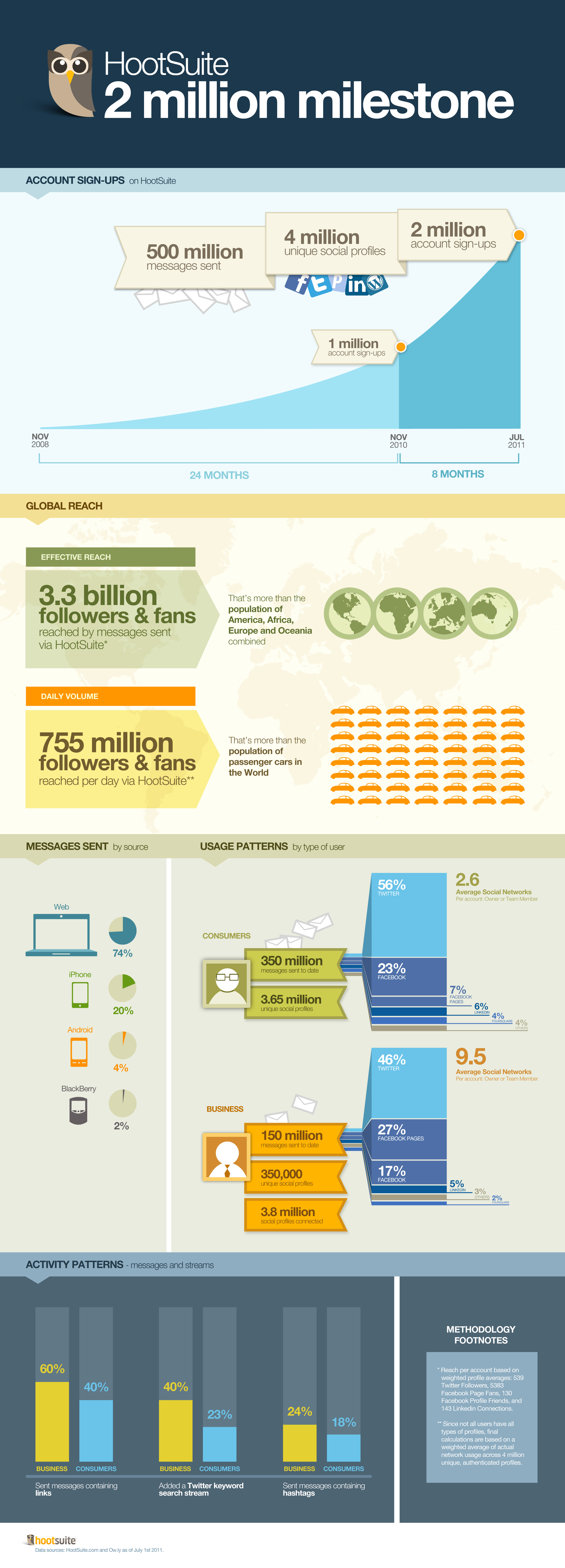 una infografía que dice que Hootsuite ya tiene 2 millones de usuarios.