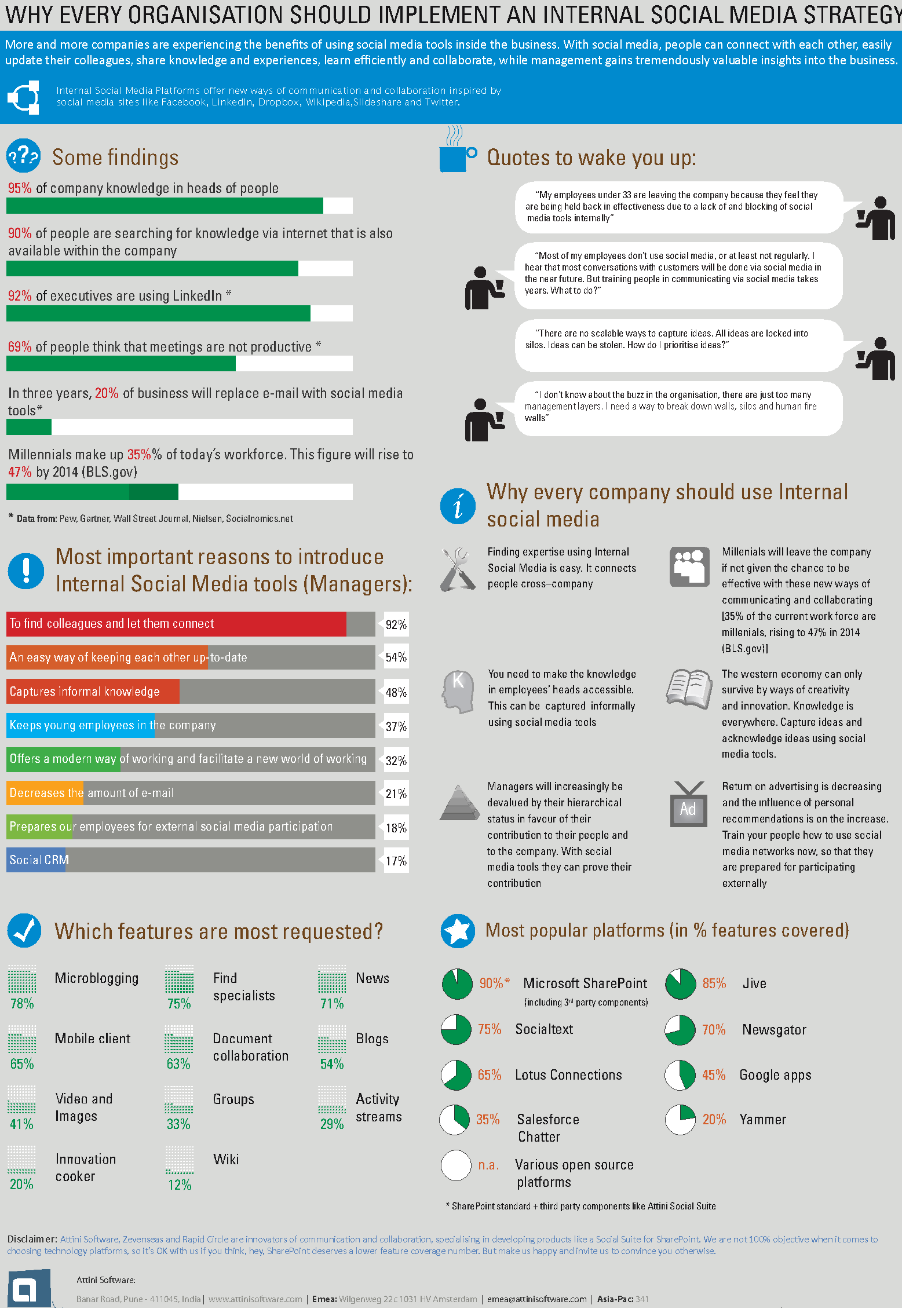 Una infografía sobre por qué las empresas debieran implantar una estrategia interna en social media.