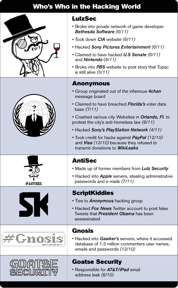 Una infografía sobre quién es quién en el mundo de los hackers.