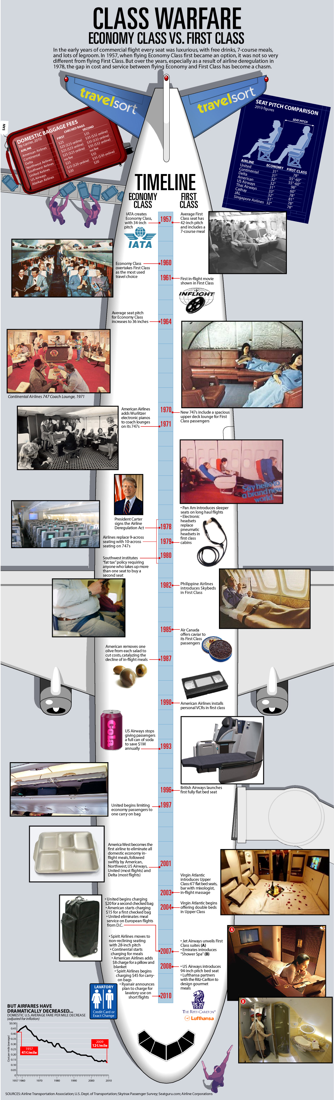 Una infografía que nos explica las diferencias entre clase turista y primera clase.