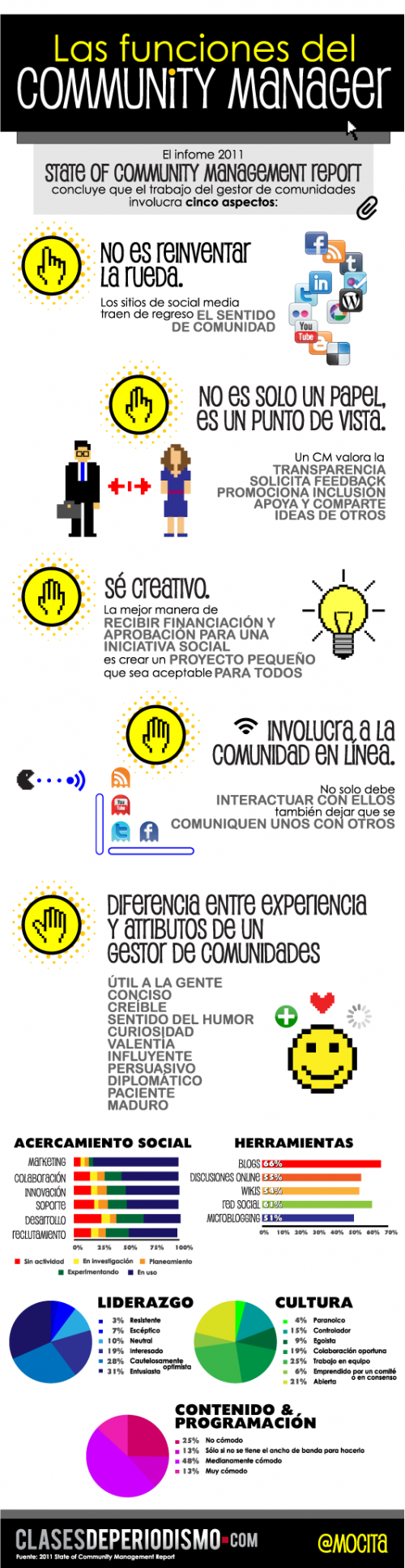 Una interesante infografía sobre las funciones del community manager. Vía Clasesdeperiodismo.com