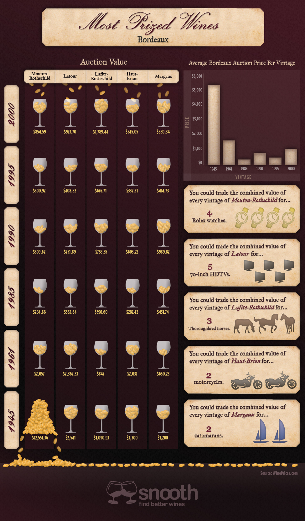Precio de algunos vinos de Burdeos #infografia #infographic