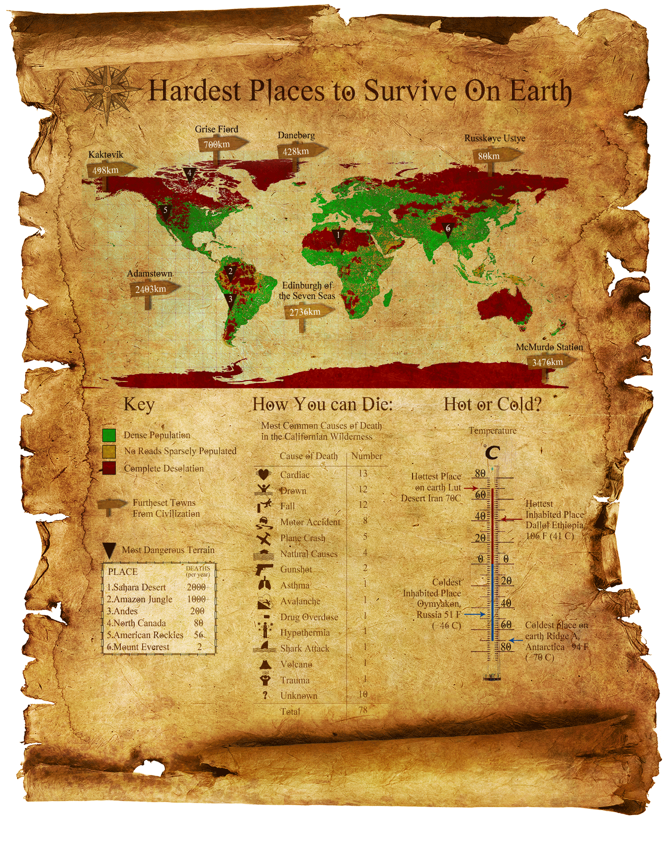 Hardest places to survive on Earth #infographic #health