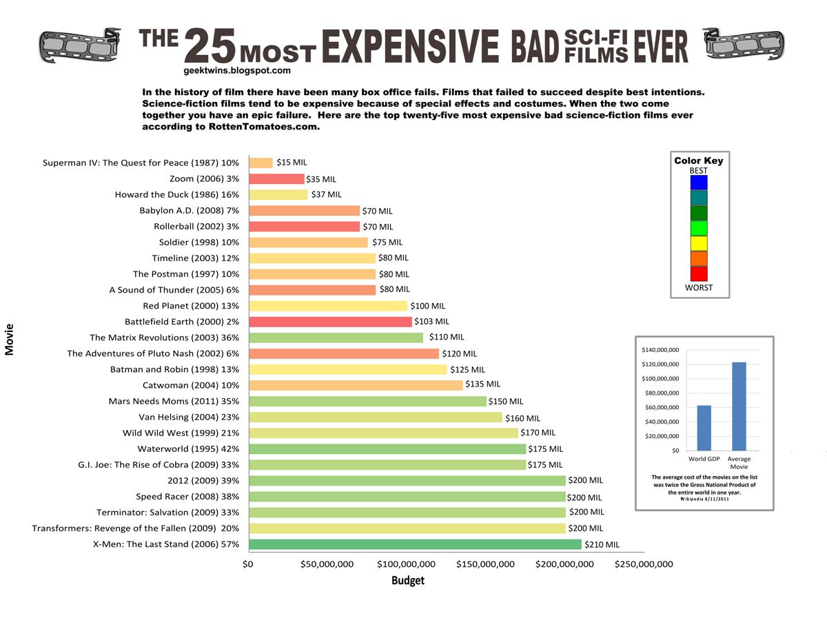 Las 25 películas malas de ciencia-ficción más caras #infografia #infographic