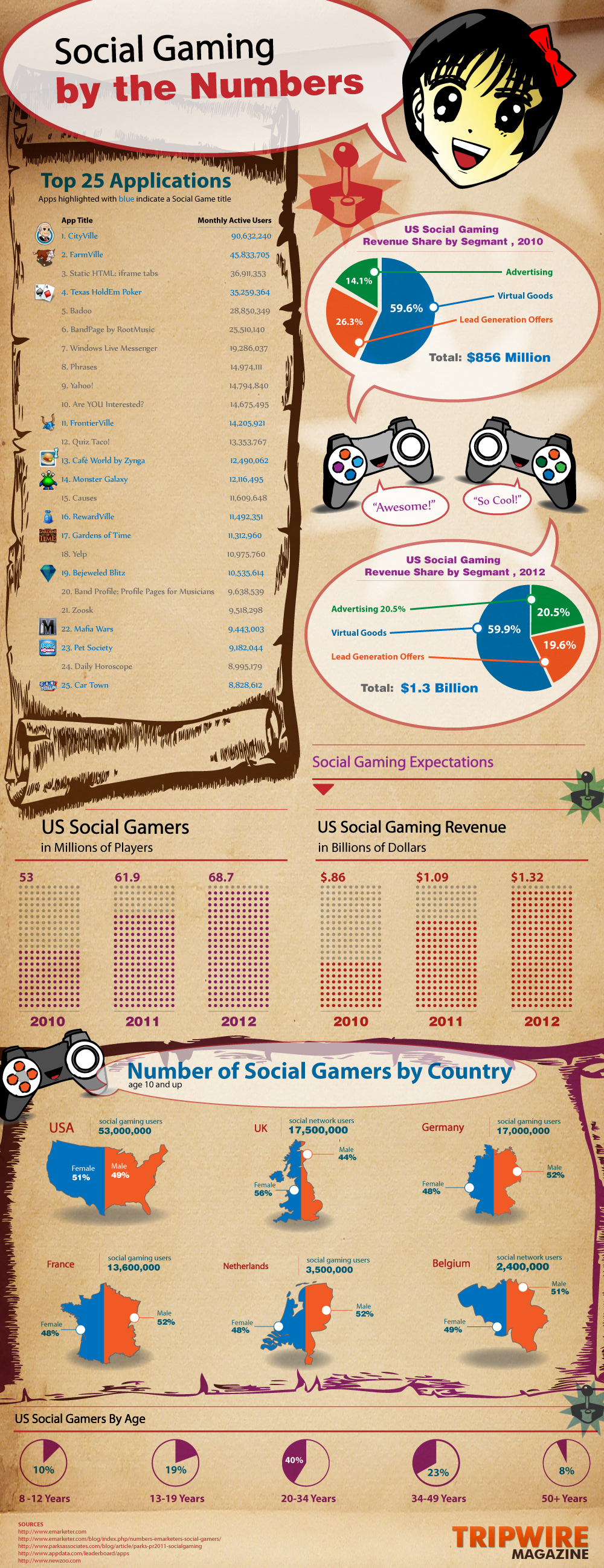 Una infografía sobre los números de los juegos sociales.
