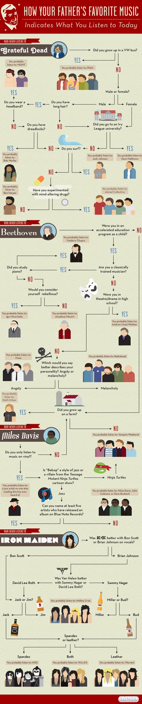 Una infografía que díce cómo ha influido la música que escuchaba tu padre en que tu escuchas.