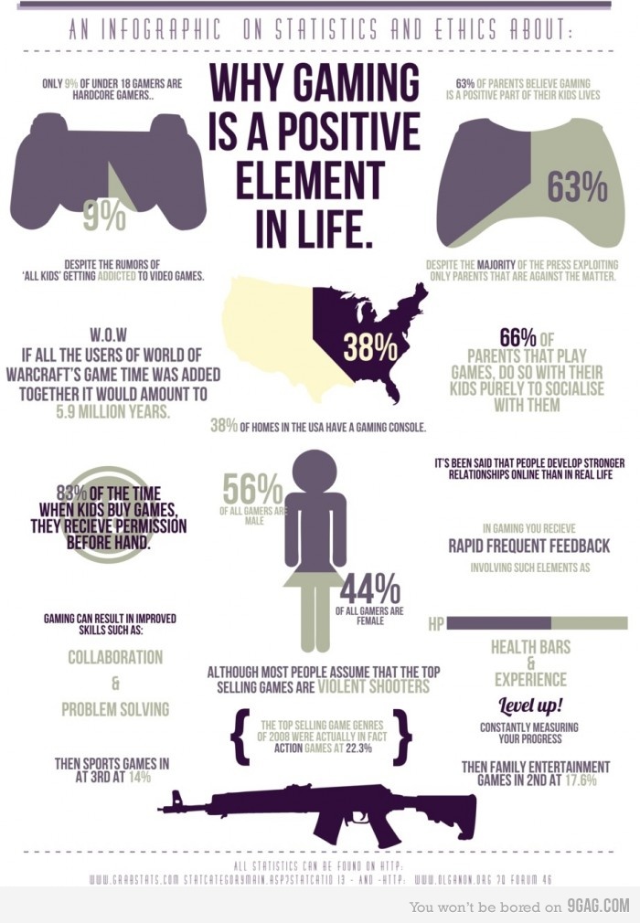 Una infografía que dice que jugar a videojuegos tiene cosas buenas.
