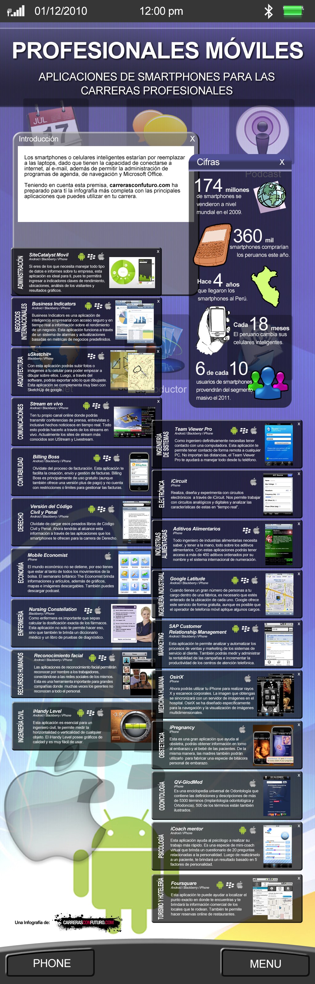 Una infografía titulada “Aplicaciones de smartphones para profesionales”.